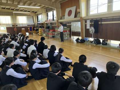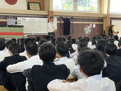 6限目武道館にて、今年度のオープンハイスクールについて進路指導主事から話を聞きました。