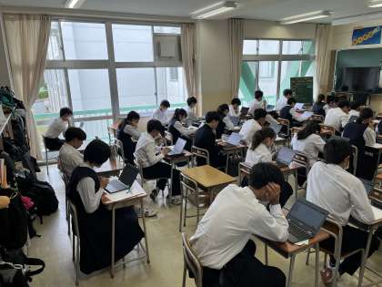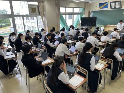 3年生は一人1台端末を用いて、学力学習状況調査に取り組んでいます。