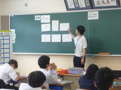 上 サニーA組 社会 「日本の姿」 下 サニーB組 数学 「形の特徴・面積」