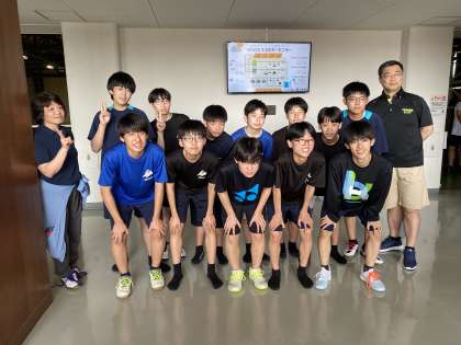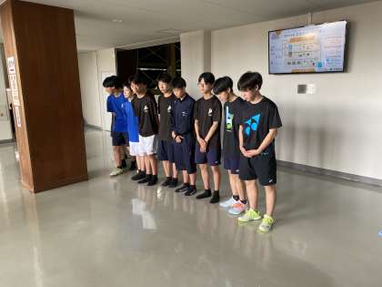 6月15日(土)富山市中学校総合選手権 男子バドミントン 公開日 2024/06/15 更新日 2024/06/15 部活動 男子バドミントン部は2日間精一杯戦い、成長が感じられるシーンがたくさんあり、心に残る試合になりました。強豪相手にもバドミントンができることを楽しみ、気持ちのよい戦いぶりでした。 たくさんの保護者の方々に朝早くから応援していただきました。ありがとうございました。 上 終わりのミーティング 中 保護者さんに挨拶 下 選手の集合写真