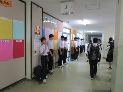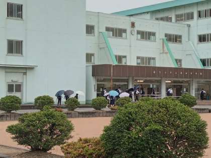 6月18日(火) 登校風景 公開日 2024/06/18 更新日 2024/06/18 学校だより 久しぶりの雨の朝となりました。真夏日が一週間ほど続いたので、恵みの雨です。校庭の草木も生き返るようでした。 今朝は卓球部が挨拶運動をしました。 大会での頑張りを生徒玄関でも発揮していました。