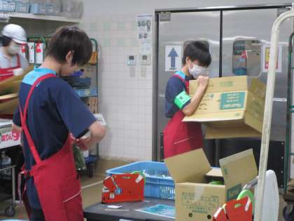 社会に学ぶ「14歳の挑戦」 アルビス奧田店 公開日 2024/07/01 更新日 2024/07/01 2学年 バックヤードで野菜の袋詰めや店内の飲料コーナーの補充に取り組んでいます。 しっかり説明を聞きながら、黙々と仕事に打ち込んでいます。