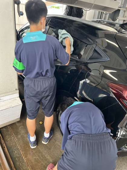 社会に学ぶ「14歳の挑戦」 Honda Cars北陸 公開日 2024/07/01 更新日 2024/07/01 2学年 洗車後の車の吹上げ作業を手伝っています。 綺麗な仕上がりになるように心を込めて作業に取り組んでいます。