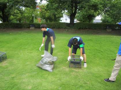 除草やゴミ拾い等の環境整備をしていました。きれいな公園を維持するためにがんばっていました。