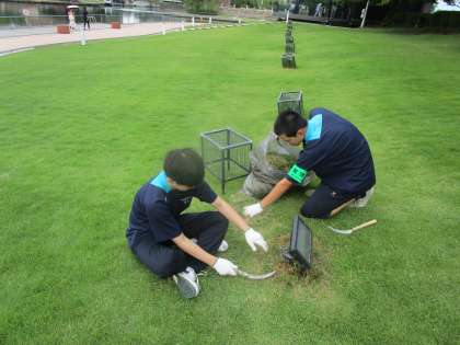 除草やゴミ拾い等の環境整備をしていました。きれいな公園を維持するためにがんばっていました。