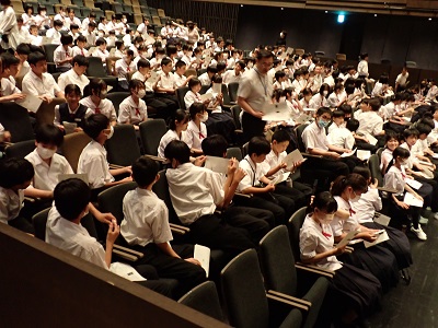1年生は、オーバードホール 中ホールで、桐朋アカデミーオーケストラの演奏を鑑賞しました。貸切バスの送迎で、会場に向かいました。「ウィリアム・テル」序曲に始まり、ベートーヴェンの「運命」、バレエ音楽「眠りの森の美女」と多彩な曲目でした。中でも歌劇「カルメン」は、音楽の授業で習ったので、指揮者体験をした生徒だけでなく、席で思わず指揮をしている生徒もいました。ステージの様子は写真に収められませんでしたが、生徒達の笑顔から、充実した時間だったことが伺われます。