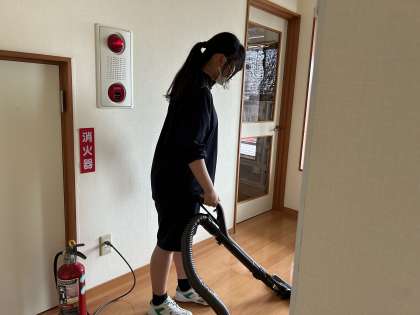 館内の清掃作業や機器を用いた介助の支援をしていました。