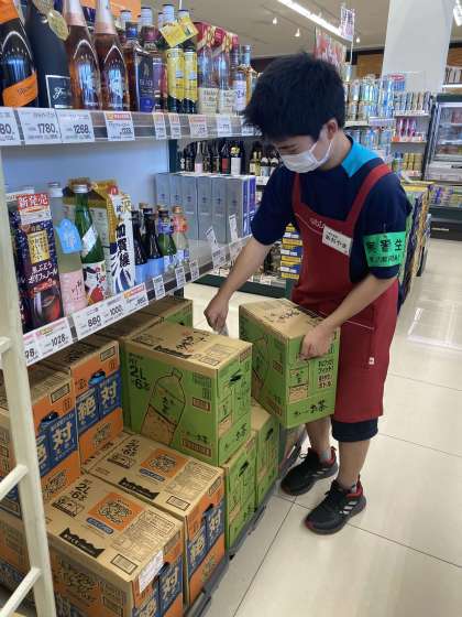 7月3日(水) 社会に学ぶ「14歳の挑戦」3日目 アルビス(株)奥田店 公開日 2024/07/03 更新日 2024/07/03 2学年 青果と飲料担当に分かれ活動していました。お客様に「いらっしゃいませ!」と元気よく挨拶をしている姿が印象的でした。