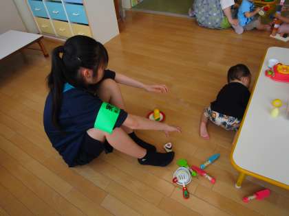 7月3日(火) 社会に学ぶ「14歳の挑戦」 3日目 めぐみこども園 公開日 2024/07/04 更新日 2024/07/04 2学年 0歳児、1歳児、2歳児クラスで保育のお手伝いをしました。生徒はよくなつかれていて、お子さん達とよい関係が築けていました。