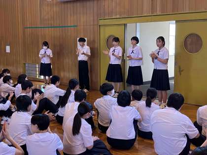 7月3日(水) 3年生 学年集会 1 公開日 2024/07/03 更新日 2024/07/03 3学年 6限 3年生は、体育館で学年集会をしました。 内容は、体育大会実行委員の紹介、団長選出のための所信表明演説です。 写真は、赤豹団と白虎団です。