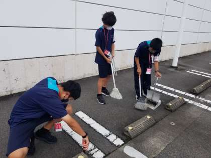 7月4日(水) 社会に学ぶ「14歳の挑戦」 4日目 (株)ユニクロ 富山豊田店 公開日 2024/07/04 更新日 2024/07/04 2学年 営業開始前に店の周りの清掃を行っています。お客様が気持ちよく来店できるようにヘラとほうき使い綺麗にしていました。