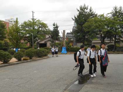 曇り空となり少し暑さも和らいでいます。 梅雨時は雨も心配。雨具の用意をしましょう。