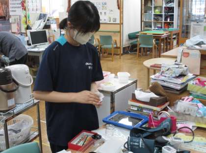 7月4日(木) 社会に学ぶ「14歳の挑戦」 4日目 在宅福祉総合センターきずな 公開日 2024/07/04 更新日 2024/07/04 2学年 朝の血圧測定や体温測定を終え、片付け作業をしていました。 4日間の活動を通して、コミュニケーションのとり方の難しさを実感しているようでした。