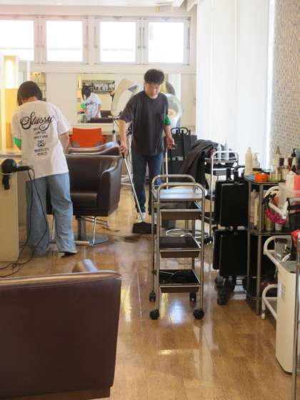 7月4日(木)社会に学ぶ「14歳の挑戦」 4日目 Ships 公開日 2024/07/04 更新日 2024/07/04 2学年 カラー材の調合や片付け、散髪後の床掃除を行っていました。自分たちで仕事を見つけ、積極的に仕事に取り組んでいる様子が見られました。