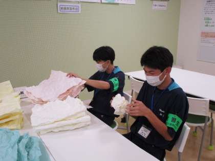 画用紙を折り曲げてアイスクリームの掲示物を作製していました。毎日工作をしたり、子どもと遊んだり、充実した活動を送っているそうです。