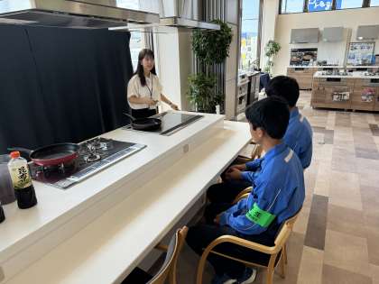 最終日の今日は、富山インター近くのショールームPregoにて、展示案内を受けたり、実際の家屋にて使われるガス製品の実演を見学したりしていました。5日間を通して、様々な学びを得て、充実した顔で活動に取り組んでいました。