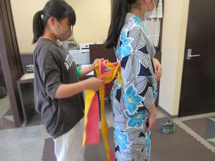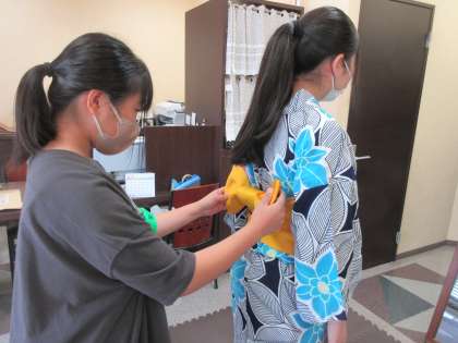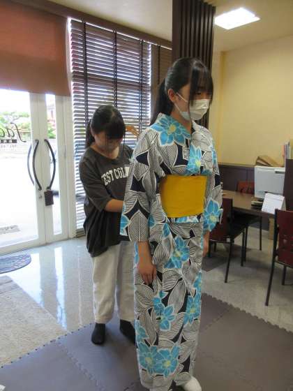 7月5日(金)社会に学ぶ「14歳の挑戦」 5日目 アリエス美容室 上赤江店 公開日 2024/07/05 更新日 2024/07/05 2学年 浴衣の着付け体験中でした。帯の形を整えるなどさいごまで美しさに気を配っていました。 パーマをかける補助に入るなど貴重な経験をさせてもらっているようです。