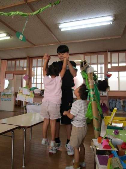 7月5日(金)社会に学ぶ「14歳の挑戦」 5日目 藤園幼稚園 公開日 2024/07/05 更新日 2024/07/05 2学年 「お兄ちゃん、お兄ちゃん」と呼ばれる顔は笑みがこぼれ、園児と楽しそうに接していました。「高い、高い」をせがまれ、列もできていました。