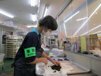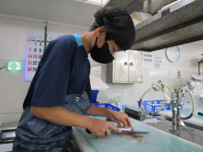 7月5日(金)社会に学ぶ「14歳の挑戦」 5日目 鮮魚河瀬 北新町店 公開日 2024/07/05 更新日 2024/07/05 2学年 たくさんある魚やしじみ、わかめをさばいたり、パック詰めにしたりしていました。作業にも慣れ、てきぱきできるようになってきたようです。