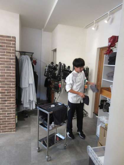 7月5日(金)社会に学ぶ「14歳の挑戦」 5日目 はまざき 公開日 2024/07/05 更新日 2024/07/05 2学年 カラーリングに使った道具の片付けや準備、タオルの補充等を手際よくしていました。 裏方の仕事も大切なのだと丁寧に作業をしていました。