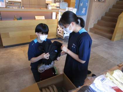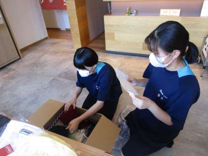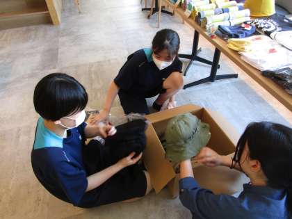 サウナハットの納品チェックをしていました。メーカーや色など、間違いが無いかを注意しながらチェックしていました。