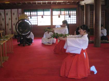 月曜から教えていただき、練習していた舞を奉納しました。厳かな雰囲気の中、立派に奉納しました。