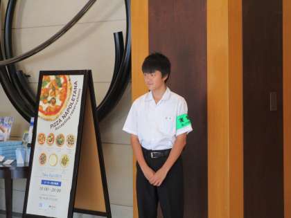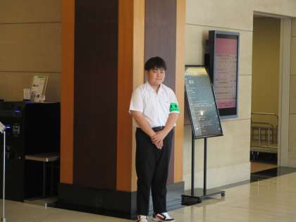 お客様のご案内に挑戦しています。姿勢を正し、丁寧に声かけをしていました。