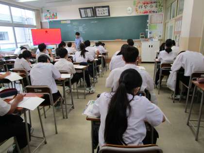 2年生は、先週は「社会に学ぶ『14歳の挑戦』」でした。今日は、1週間ぶりの授業です。