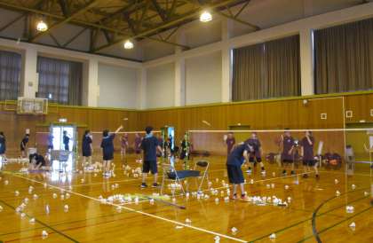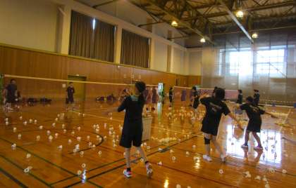 2年生が、球出しをしながら1年生に技術指導をしています。いい雰囲気です。