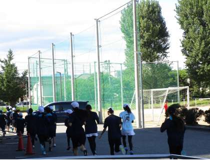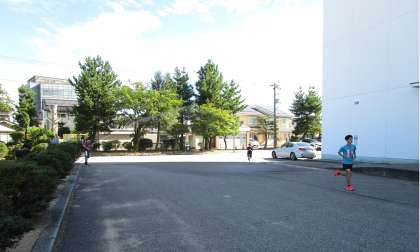8月20日(火)駅伝部 公開日 2024/08/20 更新日 2024/08/20 部活動 今朝も早くからの活動。 水のトンネルをくぐって走り続けます。 途中、女子ソフトテニス部が一緒に走っていました。