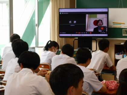 始業式も暑さ対策のため、各教室でのオンラインで行いました。