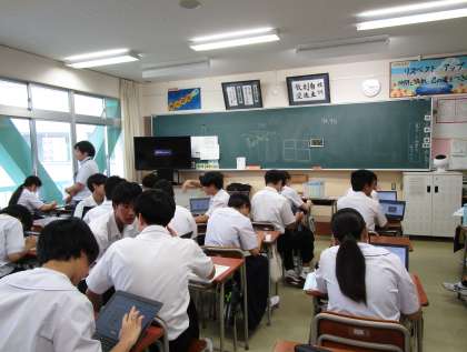 3年生の数学の授業は、関数の学習です。個人で取り組むか、友達と協力して取り組むかを選択して、一人一人が選んだ課題に取り組みました。