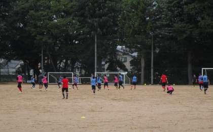 小雨が降っていましたが、グラウンドで元気に活動するサッカー部です。