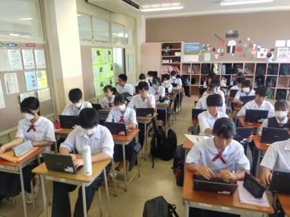 朝学活 1年生は体育大会の1年生リーダーを選ぶアンケートを行いました。