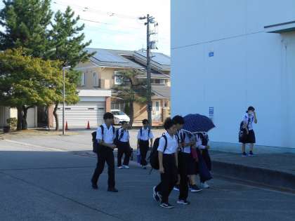 9月6日(金) 登校風景 公開日 2024/09/06 更新日 2024/09/06 学校だより 今週は晴天が続いています。 天気のよいときこそ、交通安全に気をつけましょう。 「秋の交通安全週間」が間もなく始まります。