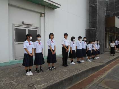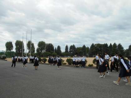 9月11日(水) 登校風景 公開日 2024/09/11 更新日 2024/09/11 学校だより 本日も生徒玄関前では生徒会選挙に向けての選挙運動が行われています。 茶道部の皆さんも挨拶運動をしていました。 今日は気温が上昇する予報です。秋にはなりましたが、熱中症には引き続き注意です。