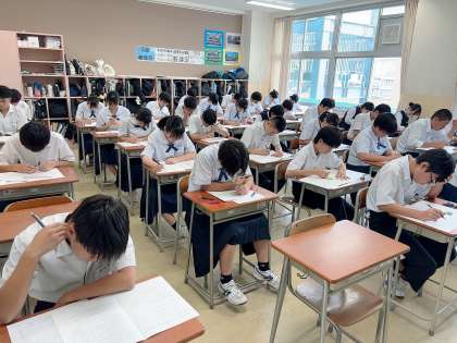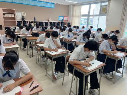 9月18日(水) 3年生 第3回確認テスト 2日目 公開日 2024/09/18 更新日 2024/09/18 3学年 3年生は昨日から確認テストを行っています。昨日はテストの後、グラウンドへテントを立てる作業を行いました。 暑い中でしたが、一生懸命頑張りました! 勉強や体育大会の準備で忙しい時期ですが、時間は「作るもの」です。 テスト直しもしっかりと取り組み、体育大会まで、文武両道で頑張りましょう!