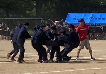 3学年の学年種目「集めろ、奥中プライド」です。 3年生の意気込みが伝わってきます。