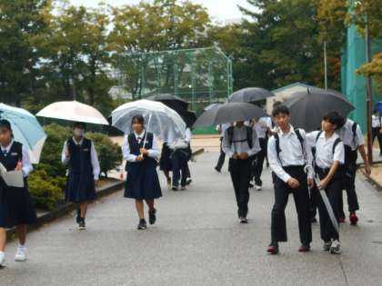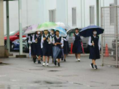 10月4日(金) 登校風景 公開日 2024/10/04 更新日 2024/10/04 学校だより 本格的な雨の朝となりました。 今日まで中間考査です。 明日は富山県中学校駅伝もあります。行事も多い10月です。