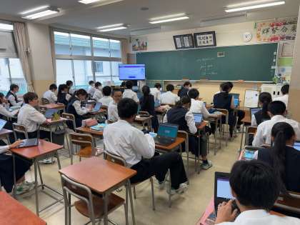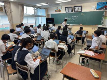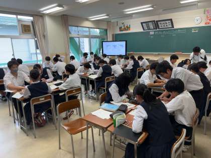 10月4日(金)2年生の授業の様子 公開日 2024/10/04 更新日 2024/10/04 2学年 中間考査も終了し、通常の授業がスタートしました。 1枚目は数学の授業の様子です。面積の変化を式とグラフから読み取る問題に取り組んでいました。 2枚目は英語の授業の様子です。ALTの先生と「〜をしなくてもよい」に関するおさらいをしていました。 3枚目は社会の授業の様子です。京都の景観規制の必要性について、調べ考えていました。