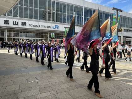 10月6日(日) 吹奏楽部 GEKI-FES出演 その2 公開日 2024/10/06 更新日 2024/10/06 部活動 富山駅でのショーののち、オーバードホール中ホール周辺までパレードを行いました。