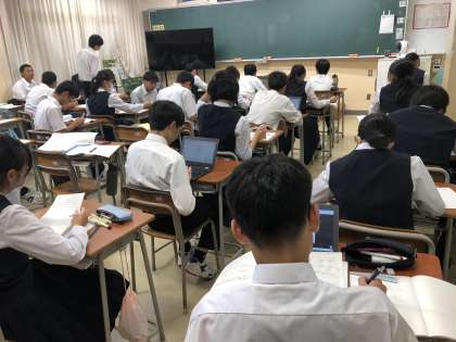 いよいよ本格的に進路について考える時期になり、各学級で進路面談を行っています。家庭でも進路について積極的に話し合いましょう。面談以外の生徒は教室で真剣に自習しています。今後、自主学習の時間も多くなります。落ち着いて自ら学習ができるようになると学力アップにつながります。「受験勉強は団体戦」といいます。みんなで落ち着いて学習する雰囲気をつくっていきましょう!