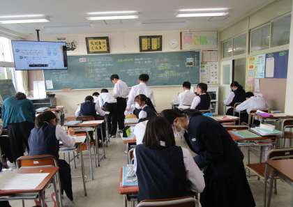 10月23日(水)1年生 授業の様子 公開日 2024/10/23 更新日 2024/10/23 1学年 理科、社会、国語の授業の様子です。 理科の授業では、濃度の計算問題に挑戦中、分からない問題を協力して考えたり、解き方を説明し合ったりしていました。