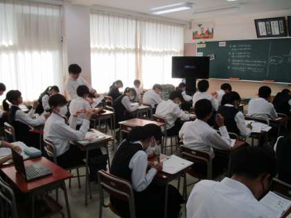 10月25日(金)5限 2年授業風景1 公開日 2024/10/25 更新日 2024/10/25 2学年 1組は、保体でバレーボールに取り組んでいます。 ラリーが続くよう、がんばっているようです。〈写真:上〉 2組は、国語で同音異義語について学習しています。 同じ読み方の漢字の区別につてい学習しました。(写真:中) 3組は、理科で大気圧について学習しています。 圧力の計算問題にチャレンジしています。(写真:下)