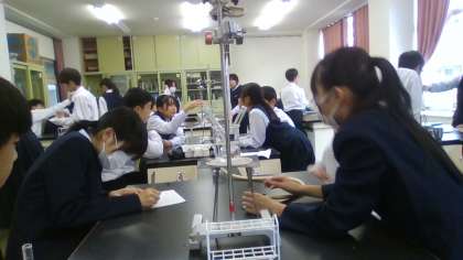 10月30日(水) 3限 1年生の授業 その2 公開日 2024/10/30 更新日 2024/10/30 1学年 上:1年3組 音楽 合唱コンクールで歌った曲で歌のテストをしています。 下:1年6組 理科 食塩と硝酸カリウムの再結晶の実験です。