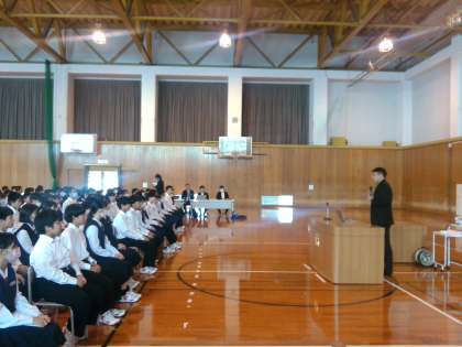 1学年は5,6限目に体育館で「先輩に学ぶ講演会」を行いました。