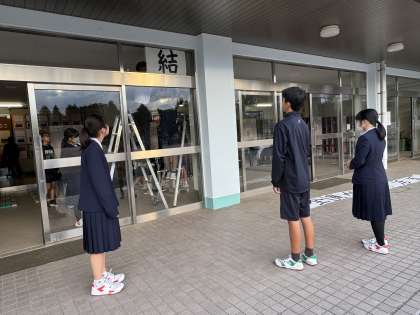 「結(むすぶ)〜全員が輝く 活気あふれる奥中へ〜」のスローガンのもと、よりよい奥田中学校になるように頑張ります。