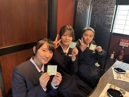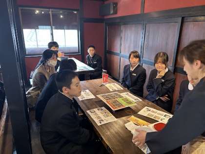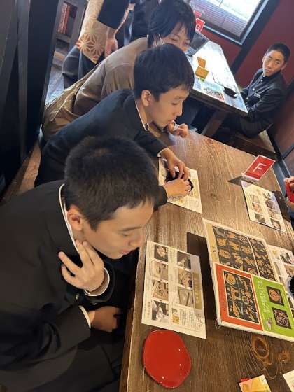 午後に体験活動を行う班が体験をを始めています。 金箔体験の様子です。