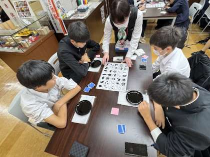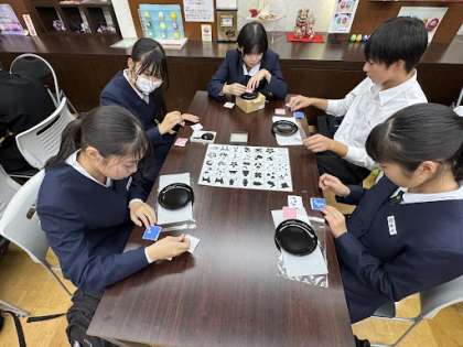 観光物産館では金箔貼り体験も行っています。 金箔貼り体験の様子です。