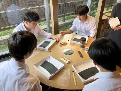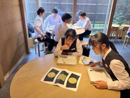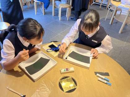 10月31日(木) 2学年 金沢校外学習 その24 公開日 2024/10/31 更新日 2024/10/31 2学年 今井金箔店でタンブラーづくりをしています。 金箔をうまく使ってきれいに仕上げます。